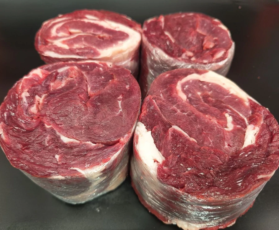 Плотный и сочный отруб из брюшной части, без кости, с жировыми прослойками и соединительными тканями. Лучше всего раскрывается при длительном тушении и варке, когда становится мягче и насыщеннее по вкусу. Подходит для рулетов, мясных блюд в соусе и приготовления сочного фарша. Хорошо держит форму при медленном приготовлении.