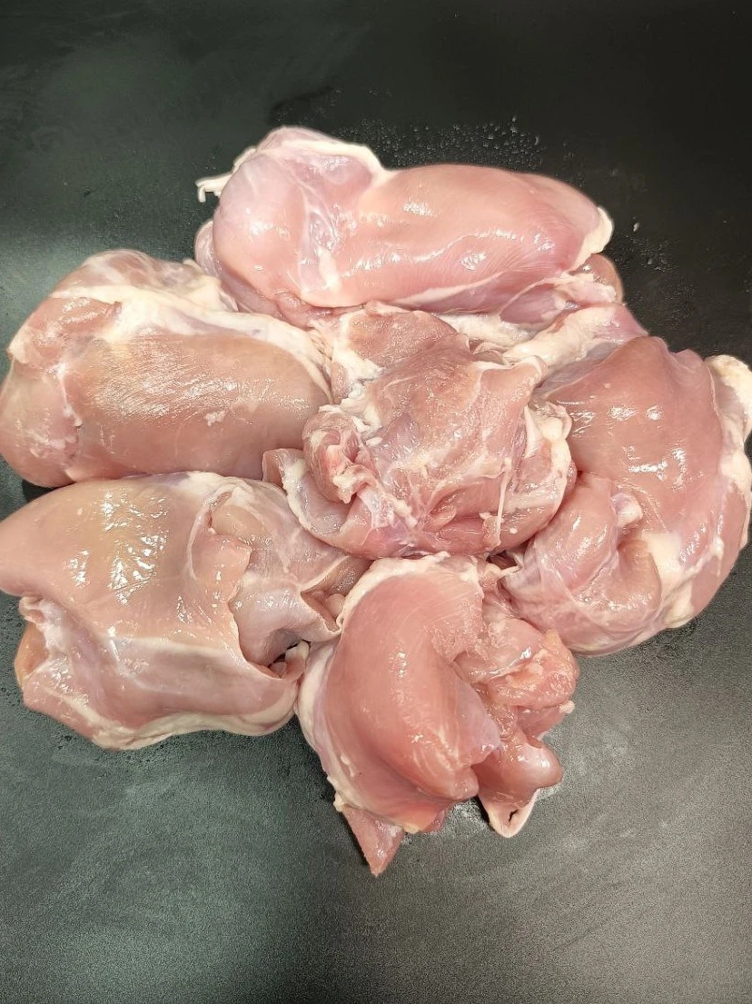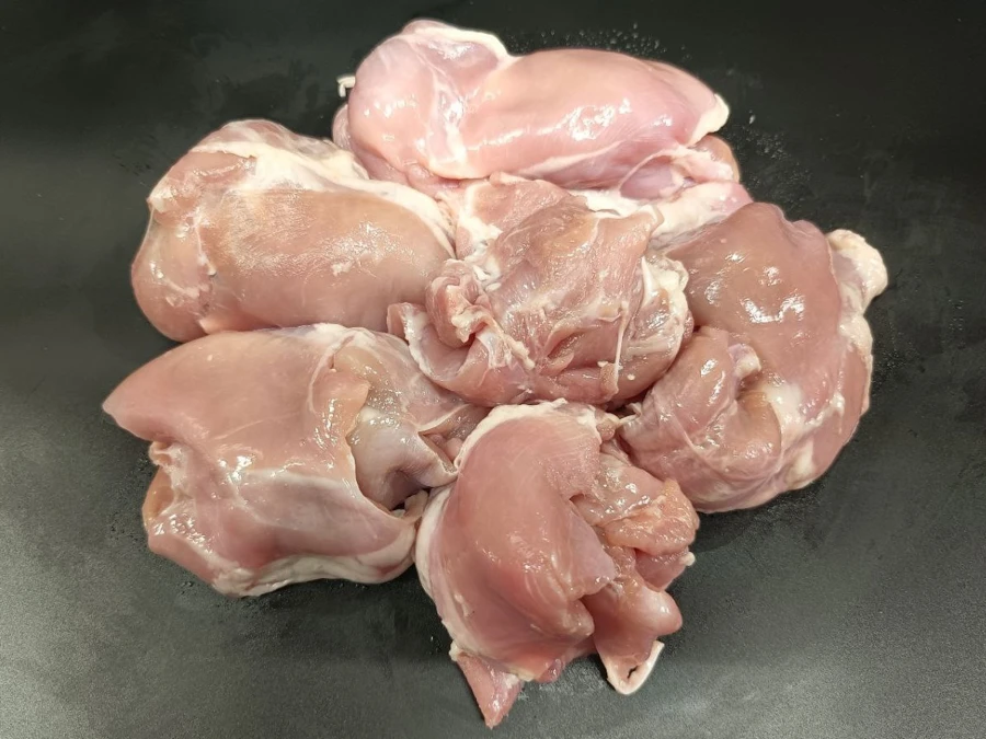 Сочная мякоть бедра без кости, более ароматная и мягкая, чем грудка, с лёгкой естественной жирностью.