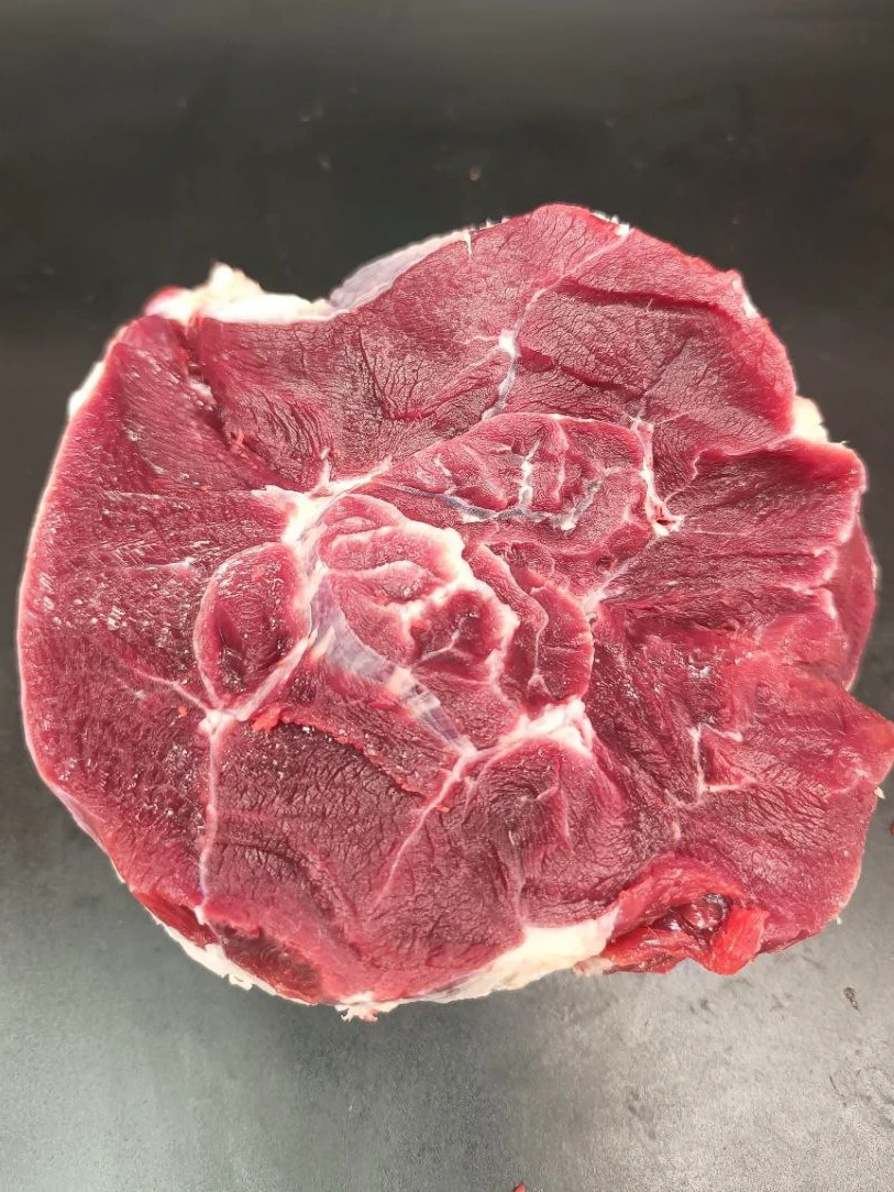 Отруб из голени, без кости, богатый коллагеном — даёт насыщенный бульон и хорошую «желирующую» основу. Лучше всего раскрывается при длительной варке на медленном огне, когда вкус становится глубоким, а текстура — мягче. Подходит для супов, холодца и блюд, где нужна плотность и навар. Также хорошо идёт в тушение до полной мягкости.