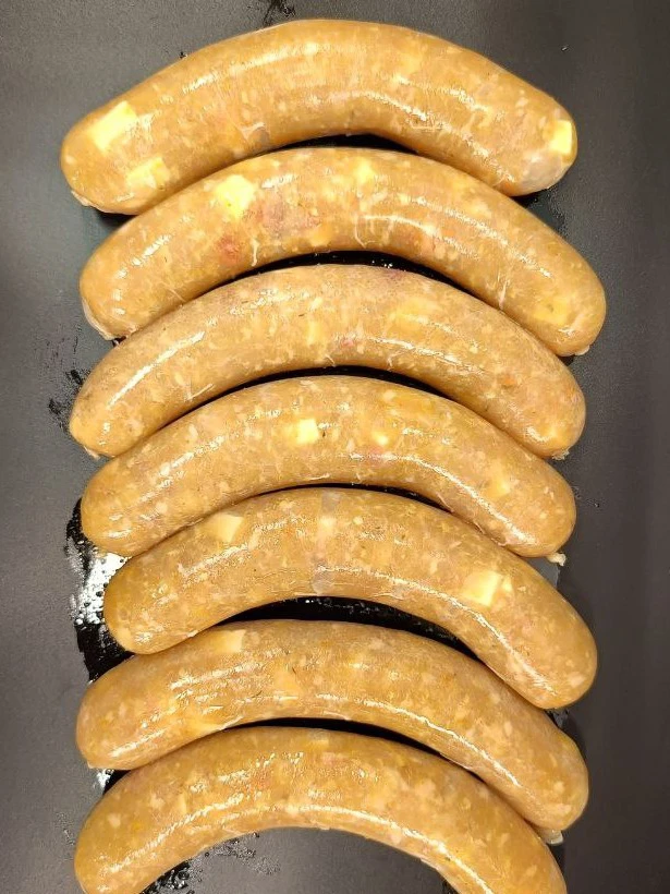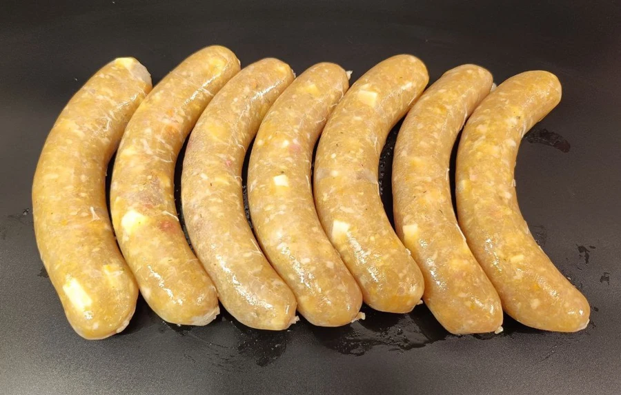 Нежные колбаски из куриного мяса с добавлением сыра, который даёт мягкий сливочный вкус и дополнительную сочность. Имеют лёгкую текстуру и хорошо подрумяниваются при приготовлении, оставаясь сочными внутри.