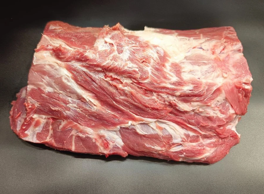 Нежное, очень сочное мясо с характерной мраморностью (тонкие жировые прослойки), без грубых сухожилий. При приготовлении остаётся мягким и ароматным, хорошо держит сочность. Подходит для шашлыка, гриля, стейков и запекания.