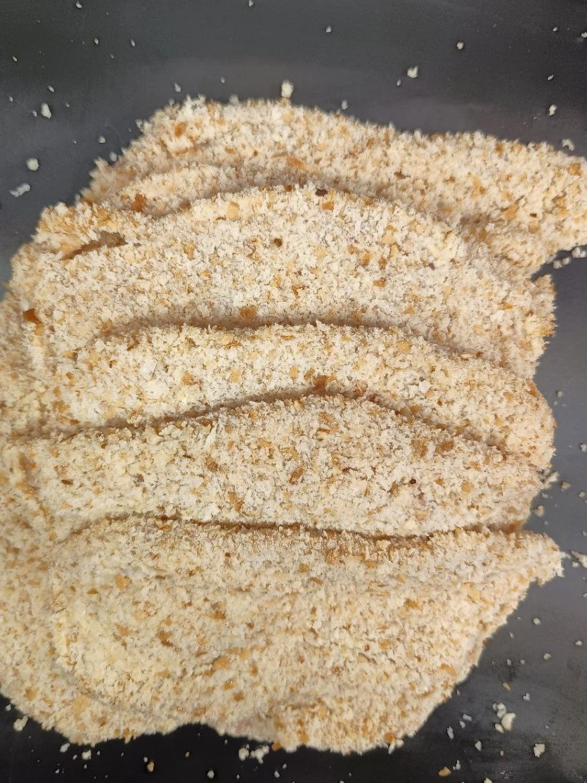 Нежные отбивные из свиной вырезки, уже подготовленные под шницель и обваленные в панировке. Вырезка — самая мягкая часть свинины, поэтому шницель получается тонкий, аккуратный и “тающий”, с хрустящей корочкой после жарки.