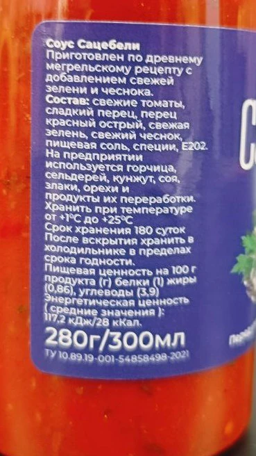 Томатный соус в грузинском стиле с выраженным вкусом чеснока и зелени. Даёт яркую кисло-сладкую томатную основу и хорошо дополняет мясные блюда. Подходит как соус для подачи и как добавка при приготовлении. Перед употреблением требуется взболтать.